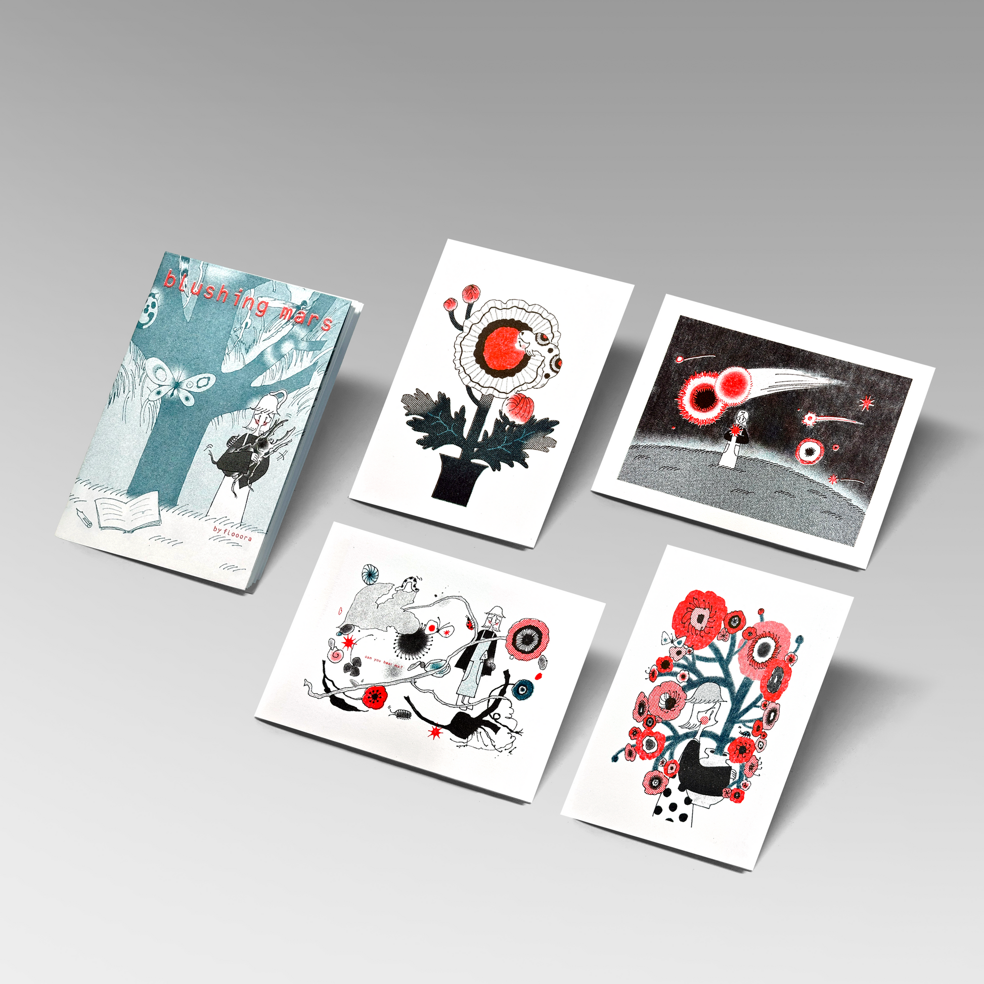 A girl, a forest, and a balloon. Blushing Mars is a soft, reflective comic about love in its smallest, quietest forms, care that grows like flowers, unseen gestures that still find their way back to us. Rooted in tenderness and a hint of strangeness, the story invites you to slow down, notice, and feel. Featuring a removable cover that doubles as a poster.